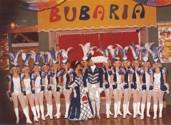 Franziska Bauer: Die Familie Zarmer hat die Bubaria aus der Taufe gehoben, wir waren damals schon dabei. 1977 und 1978 waren wir Prinzenpaar. Das kam so: 1977 war es ein langer Fasching, mit Narrenabenden und vieles [andere]. 1978 war dann der Fasching sehr kurz und man fand kein Prinzenpaar. So wurden wir noch einmal gefragt. Auch das war ein Beitrag für die Außendarstellung von Buchbach. Buchbachs Ruf als Faschingshochburg begann damals, die Bubaria war eine sehr bekannte Faschingsgesellschaft: ob es die Prinzengarde war, die Prinzenpaare, die Kleider wurden immer schöner, gleiche Kleidung für die Garde, thematische Faschingsveranstaltungen ...