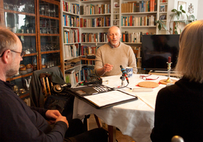 Es sind nicht immer bloß die dummen Leute, die hinter einem Verführer nachlaufen. Und so einen Führer haben wir ja auch gehabt. – Mir ist wichtig, dass ich versuch, die Leut’ zu verstehen, aus ihrer Prägung, aus ihrer Zeit. Ich hab da vom [Wilhelm Franz] Canaris [während der NS-Zeit Leiter des militärischen Geheimdienstes der Wehrmacht und einer der wenigen Widerstandskämpfer gegen Hitler, deren Einordnung in die Geschichte noch Anfang des 21. Jahrhunderts umstritten ist, d. Red.] bis zum [Bernard] Montgomery [in der Schlacht von El Alamein besiegte er Erwin Rommels Afrikakorps und wurde zum populärsten britischen Heerführer des Zweiten Weltkriegs] einige Biografien stehen. Wenn ich das Dritte Reich verstehen will, dann kann ich das nicht aus der heutigen Warte tun. Die [waren damals] ja geprägt aus den Zehner-, den Zwanzigerjahren.