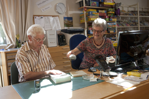 Maria Zoglauer (M), Lehrerin im Ruhestand, geboren 1933 und Siegfried Zoglauer (S), früher Personalreferent bei Himolla, heute in Rente, beide 1933 geboren. – Beide leiteten über viele Jahre die Bücherei in Buchbach