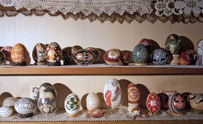 Bei euch im Haus fallen die verschiedenen Vitrinen mit ausgeblasenen und geschmückten Eiern in verschiedener Größe auf. Woher kommt die große Eiersammlung?